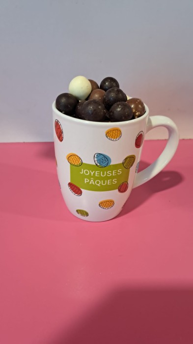 Mug garni d'un assortiment de céréales soufflées (billes) 170 g.
